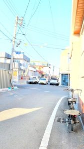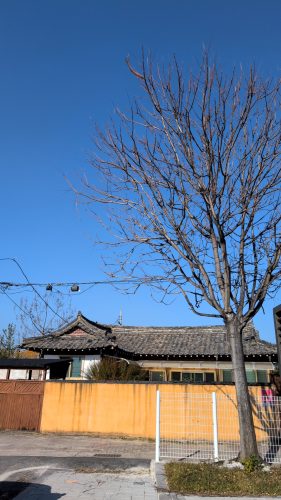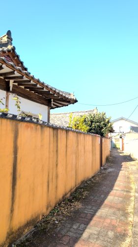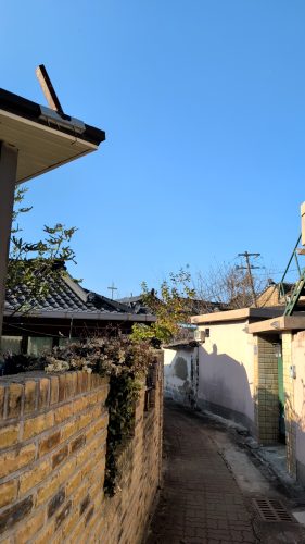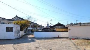 寺のパティオというか、その円周に道が集まってるような場所。北西に回って北行。ad.110번길20