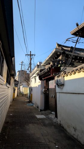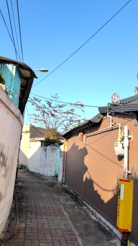 やはり抜けれました。1411左折、L字の際の路地へ再突入。ad.同봉황로102번길の15-12→15-1とある。※봉황 鳳凰