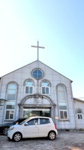 성결한교회という教会に出ました。皆さんここを駐車場代わりにしてるらしい。