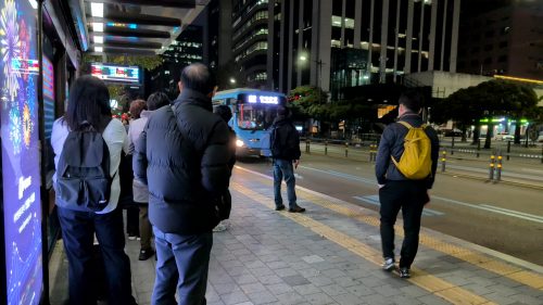 前方の白人が現金で払え、いや払えないと運ちゃんと揉め始めた。スマホに自動翻訳させてる。ドルならある、いやコリアマネーと言ってる。見かねた後ろのおじさんが代わりに払ったらしい。