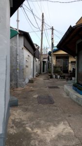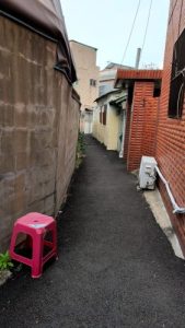 車道。対面、海天電氣の右脇道へさらに進む。入り際東を一枚。0823
