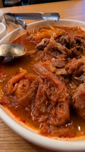 サービスは南ポの店ほど良くはないけれど、キムチチムはどう伝えてるものなのか、きっちりと酸っぱ辛く、肉はとろける柔らかさ。