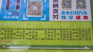車内の路線表示と支付宝・微信の支払用の「扫」(スキャン)用QRが付されてる。