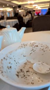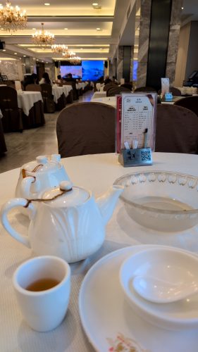 配膳ロボットが走り回ってる。いつかはあいつが持ってくる点心を受け取ることになるんだろな。ここは幸いロボットから人間の給仕が受け取って配膳してます。