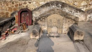 ──この二セットの、同構造の祠群は一体何を意味するのでしょう?多分香林古廟が、ネーミングとしても配置上も古いと思われるんたけど、ならなぜ新しい方の構造を作ったのでしょうか?香港でも台湾でも古い構造を膨らますことを考えるはずです。この形の、古構造を新構造の中に隠してしまうような増設法はかなり珍しいと思うのです。