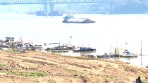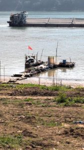 土地にうねりが出てきた。快晴。西江をいく輸送船が長閑です。支流とクリークが無数にある。