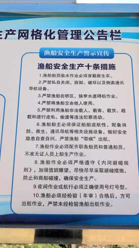 端州区農業農村局の漁船安全生産十条措施を撮影。内河避碰規則というフレームがあるらしい。