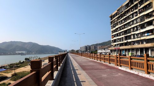 1308岸の道路上から東を一枚。遠方に西江大橋