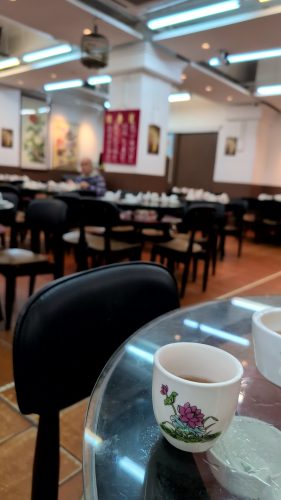 確かに……ゼロベースで広東の食文化感覚を考えてみると、節制の趣旨での一盅兩件というのはどうも馴染まない気がします。この成語の存在が全くの誇張や虚偽ではなくても、「一盅」と「兩件」のペースで飲み食いすべし、という程度の意味で、第二杯目又は別のお茶を入れたらまた別の点心二件を食べるのを抑制する趣旨は無かったようにも思えます。