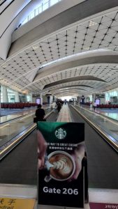 香港空港のゲート表示+スタバ広告