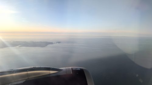 1555日本時間1655着陸。前の席の女の子二人が拳の甲をガツン。