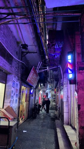 1606事実上のT字。牌門あり。振り返り一枚。右を選ぶ……というかWCがそっちでした(また?)。北行。ad.客村十四巷。登り。