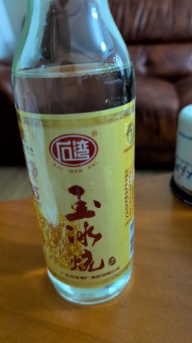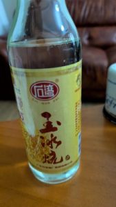 玉冰燒(玉氷焼)は広東省仏山が発祥の蒸留酒で、その特徴は米を蒸留して作った白酒に豚肉を漬けて完成させるという奇抜な製法にある。肉の臭みとりや柔らかさの向上を狙って、肉類の下拵えに酒精が使われることは多いが、ここでは酒のために肉が使われている。漬けた豚肉(一応蒸すらしい)が透き通ってきて玉のようになるという説明もされるが、玉冰燒の「玉」の由来は単純に「玉」と「肉」が同音(yuhk)であるところにある。〔後掲のうやくん〕