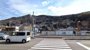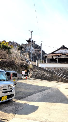 正殿裏は崖、崖下を国道。