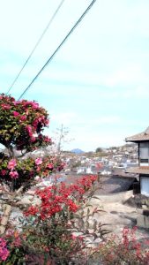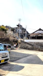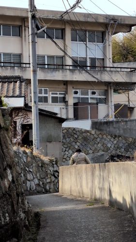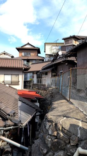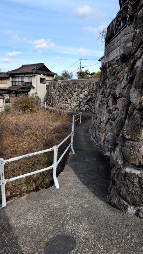 郭のような野積の石垣と横道が鱗のように続く。下界に選挙カーがわめいてる声。