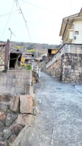 1134多分宇佐神社上手の小公園・警固屋4丁目公園。さっき声かけて行った赤セーターのおばあちゃんがいる。