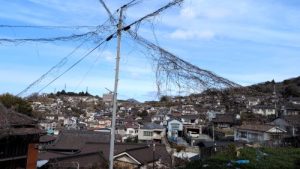 中◯電力、電線綺麗にしたれよ、な蔦だらけな電線下。1133