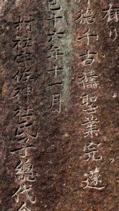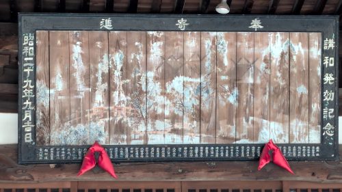 これも北朝南面。舞台正面に「講和発効記念」「昭和二十九年九月吉日」の奉寄進板。