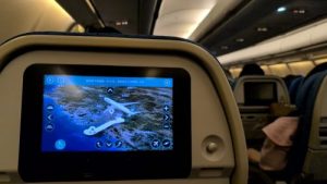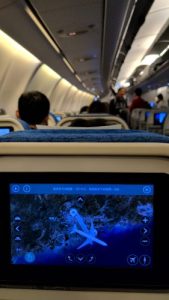 E席は真ん中区画の中央。でも、そうか!久しぶりのキャセイです。機内モニターも使える!でも寝なきゃなあ……。