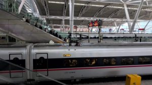0959大きな川、多分珠江。運搬船多数。10時を回った。目の前の無座らしきお兄ちゃん、両足開いてジーンズのポケットに手を突っ込み廊下に立ち尽くしてる。245km/h。