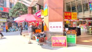 龍城路。浅いように見えるけど市場がある。バス停・龍城銀興路。