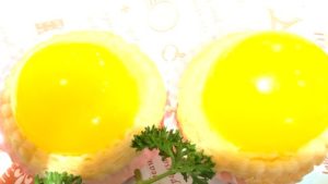 会跳跳的蛋蛋は何のことやらというネーミングですけど、上に乗ってる球体を、最初二つに分けて食おうとしたら、弾けてしまいました。要するに、一口で食べるしかない。
