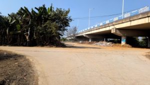 1406橋桁下に2本の道。手前南側の細道へ左折西行。